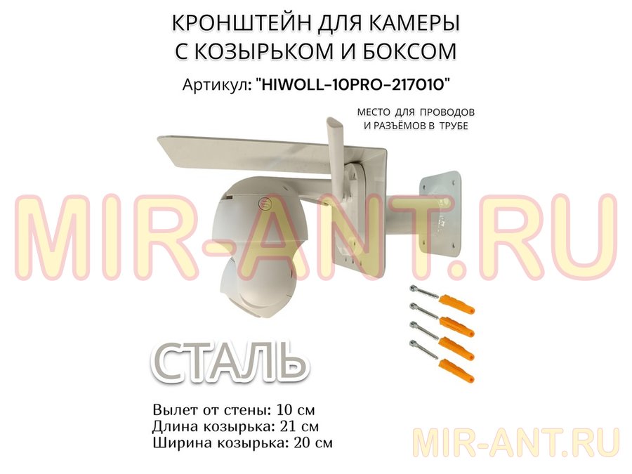 . Для видеокамер. Кронштейны к стене с козырьком "HIWOLL", поворотные.