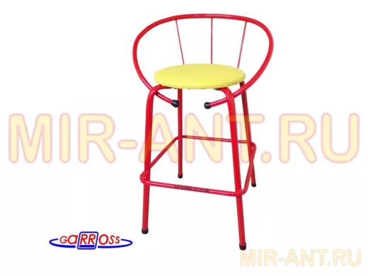 В корзину Купить в 1 клик "ARTBARNS 1S-117186" cтул барный, табурет,спинка, высота 0,61м, 22мм,красные ножки/жёлтый верх ткань