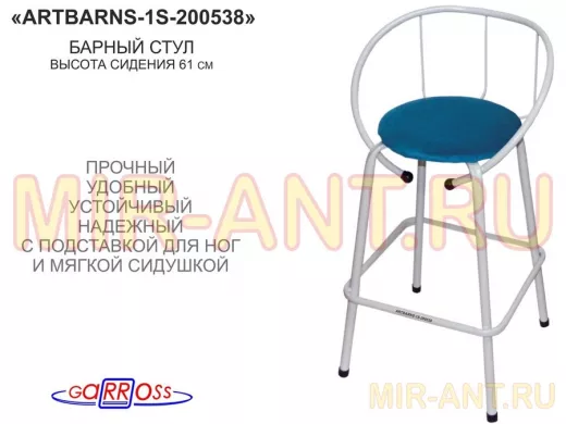 Барный стул "ARTBARNS-1S" органично дополнит интерьер модного заведения или домашней кухни. Стильная модель высотой 0,61 метра устойчиво стоит на четырех опорах с удобными подножками.