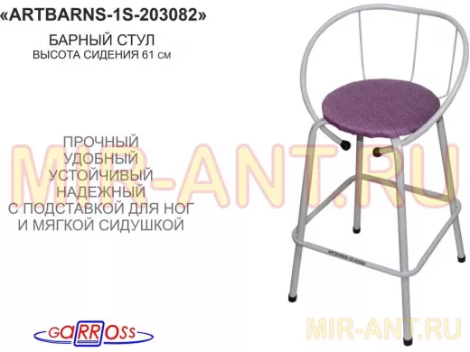 Барный стул "ARTBARNS-1S" органично дополнит интерьер модного заведения или домашней кухни. Стильная модель высотой 0,61 метра устойчиво стоит на четырех опорах с удобными подножками.