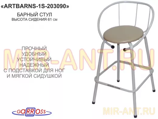 Барный стул "ARTBARNS-1S" органично дополнит интерьер модного заведения или домашней кухни. Стильная модель высотой 0,61 метра устойчиво стоит на четырех опорах с удобными подножками.