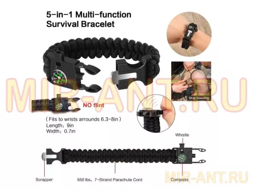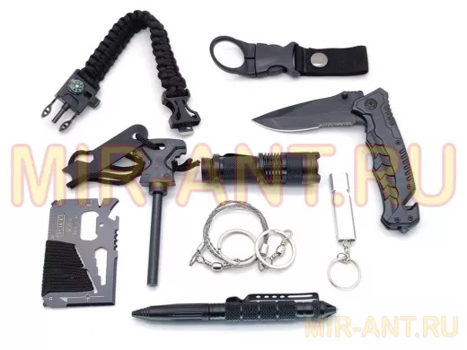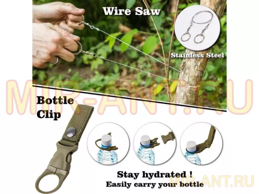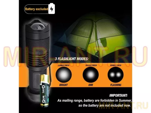 1) Фонарик (3 режима, питание АА-в комплект не входит)