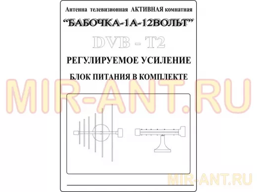 - "БАБОЧКА- 1А-5ВОЛЬТ" АКТИВНАЯ комнатная телевизионная антенна предназначена для приема цифрового DVB-T2 и аналогового телевизионного сигнала ДМВ диапазона