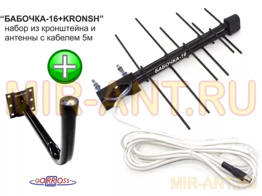 КРОНШТЕЙН и КАБЕЛЬ в комплекте с DVB-T2 антенной "БАБОЧКА-17"