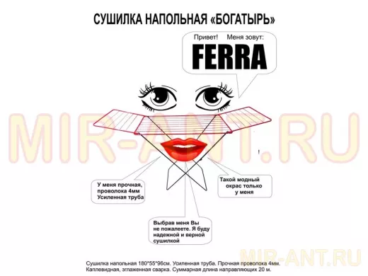 • "БОГАТЫРЬ" FERRA сушилка напольная КРАСНО-ЧЁРНАЯ 20 метров, предназначена для сушки белья
