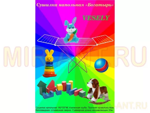 • "БОГАТЫРЬ" VESELY сушилка напольная РОЗОВО-БЕЛАЯ 20 метров, предназначена для сушки белья