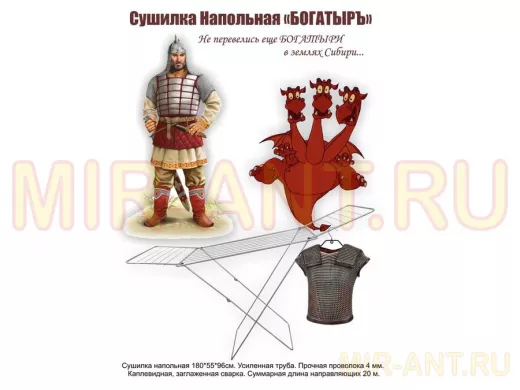 "БОГАТЫРЬ" STYLE-4 сушилка напольная СЕРЕБРИСТАЯ 20м, усиленная труба, прочная проволока 4мм !!! - Мир антенн