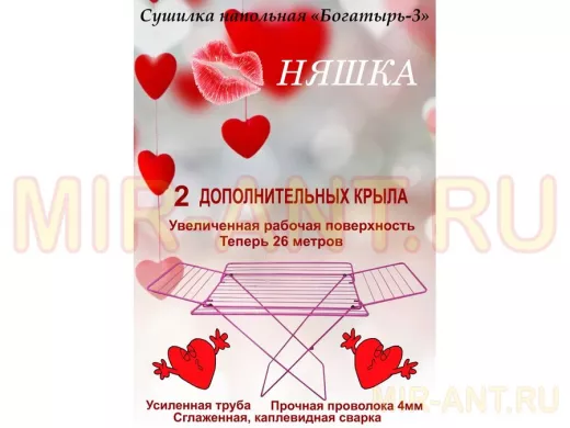 • "БОГАТЫРЬ-3" НЯШКА сушилка напольная РОЗОВАЯ 26 метров, предназначена для сушки белья