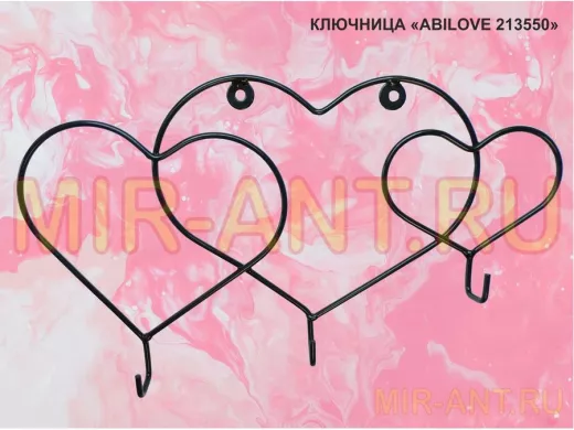 Ключница, держатель полотенец, вешалка в прихожую, три сердца с крючками, чёрный "ABILOVE 213550" - MIR-ANT.RU
