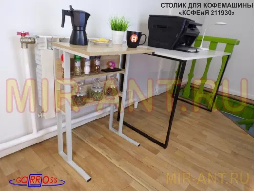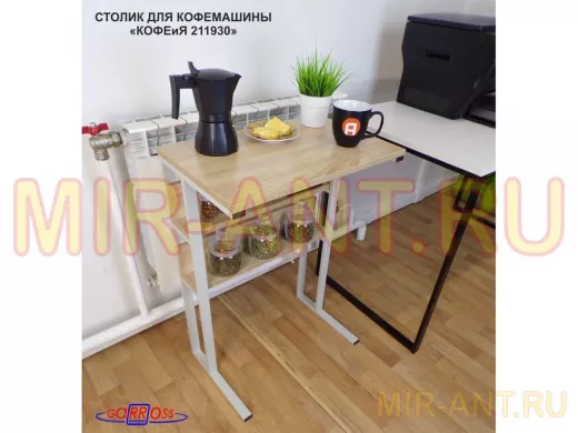 В корзину Купить в 1 клик Столик для кофемашины "КОФЕиЯ 211930" высота 79 см с двумя полками для стаканов и банок, серый, дуб