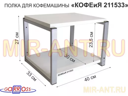 В корзину Купить в 1 клик Полка под кофемашину к стене, высота 27см, серый каркас "КОФЕиЯ 211533" полки 30х40см, сосна
