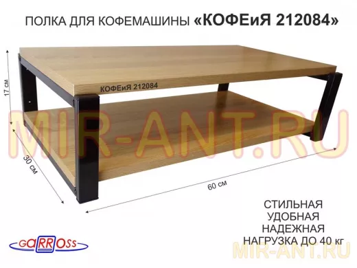 Полка для кофемашины, черная "КОФЕиЯ 212084" высота 17 см, полки 30х60 см, дуб сонома, 2 уровня - MIR-ANT.RU