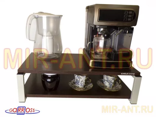 Полка для кофемашины, серая "КОФЕиЯ 212142" высота 17 см, полки 30х60 см, венге, 2 уровня - MIR-ANT.RU