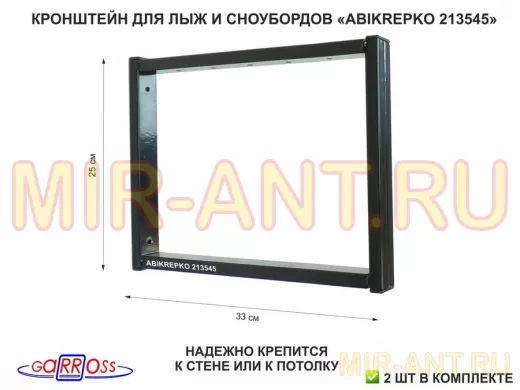 Кронштейны для лыж и сноубордов к стене, потолку, чёрный "ABIKREPKO 213545" 33х25см, 2шт в комплекте - MIR-ANT.RU