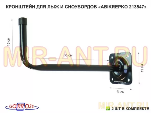 Кронштейны для лыж и сноубордов к стене "ABIKREPKO 213547" вылет 35см, высота 15 см,2 шт в комплекте - MIR-ANT.RU