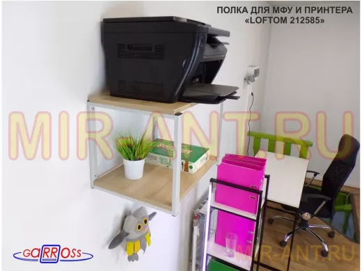 Полка под МФУ или принтер, высота 38см серый "LOFTOM 212585" две полки 35х54см, дуб сонома - MIR-ANT.RU