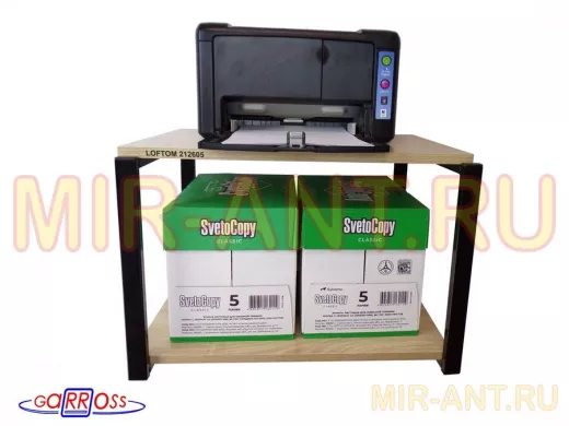 Полка под МФУ или принтер, высота 38см черный "LOFTOM 212605" две полки 35х54см, дуб сонома - MIR-ANT.RU