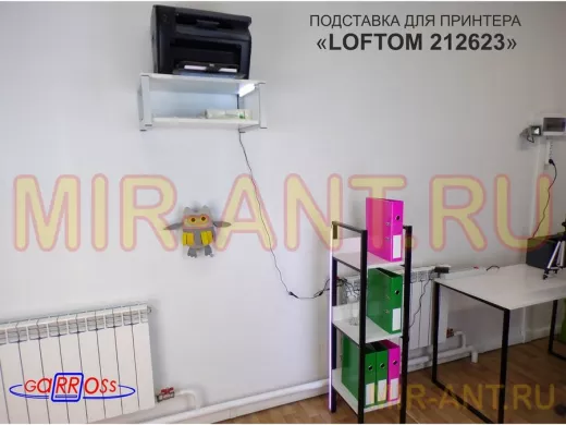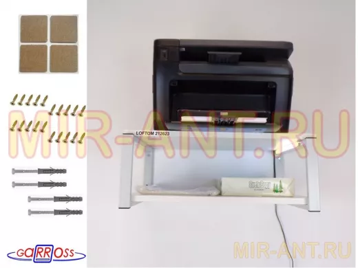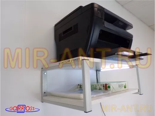 • Полка надежно крепится к стене при помощи анкеров или шурупов с дюбелями, на ней можно разместить принтер, сканер, МФУ и другую офисную технику