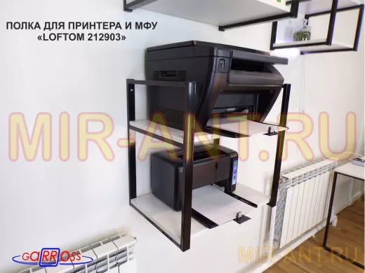 Полка под принтер или МФУ, высота 54см черная "LOFTOM 212903" 2 уровня, 35х54см, сосна - MIR-ANT.RU