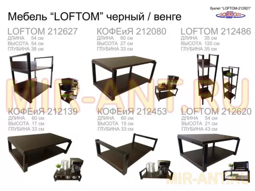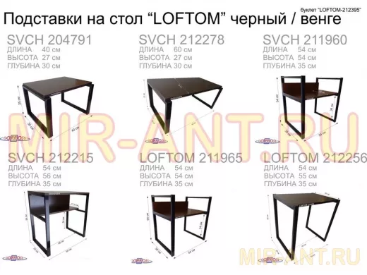 Полка под принтер или МФУ, высота 54см черная "LOFTOM 212904" 2 уровня, 35х54см, венге - MIR-ANT.RU