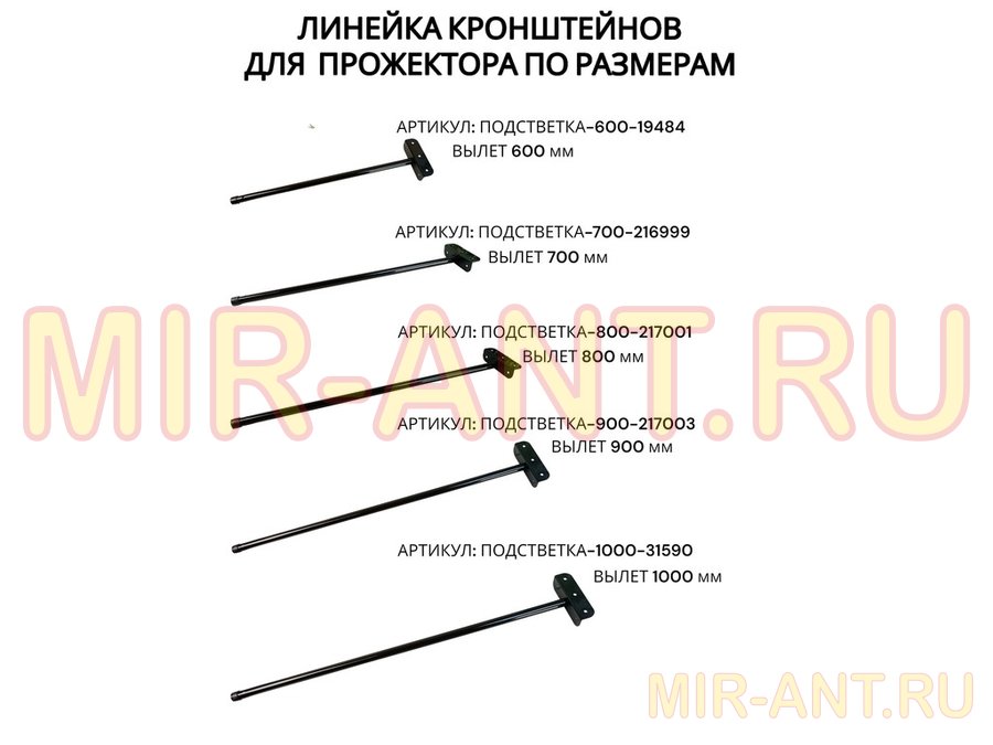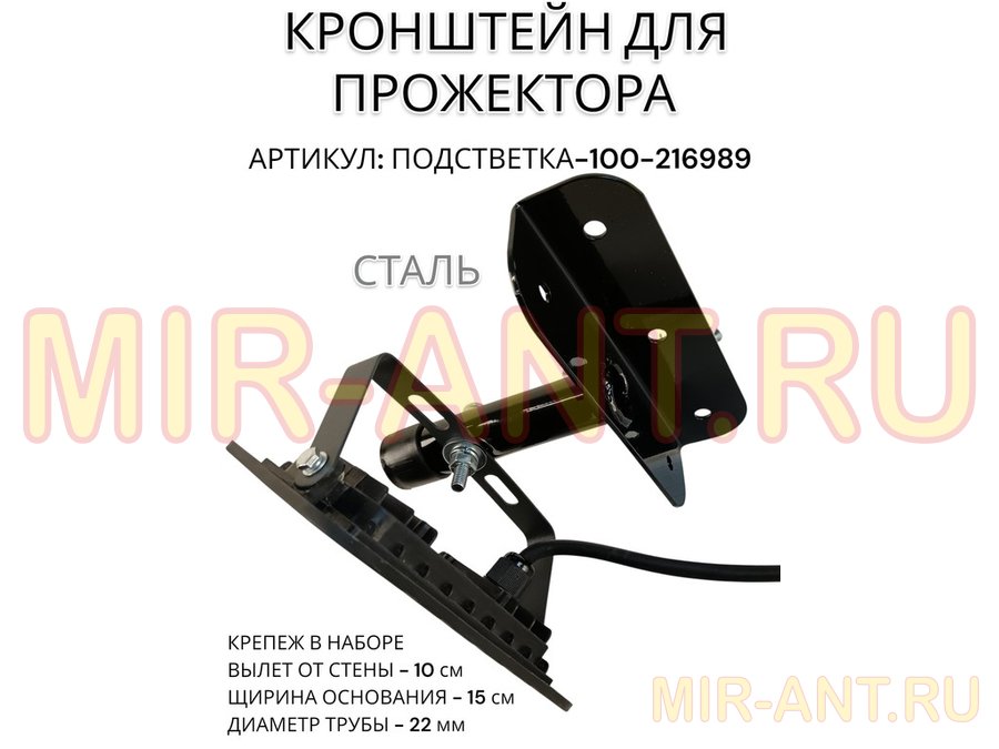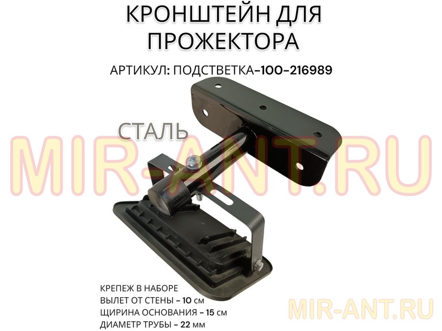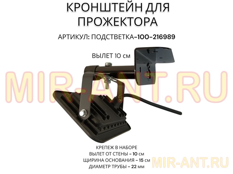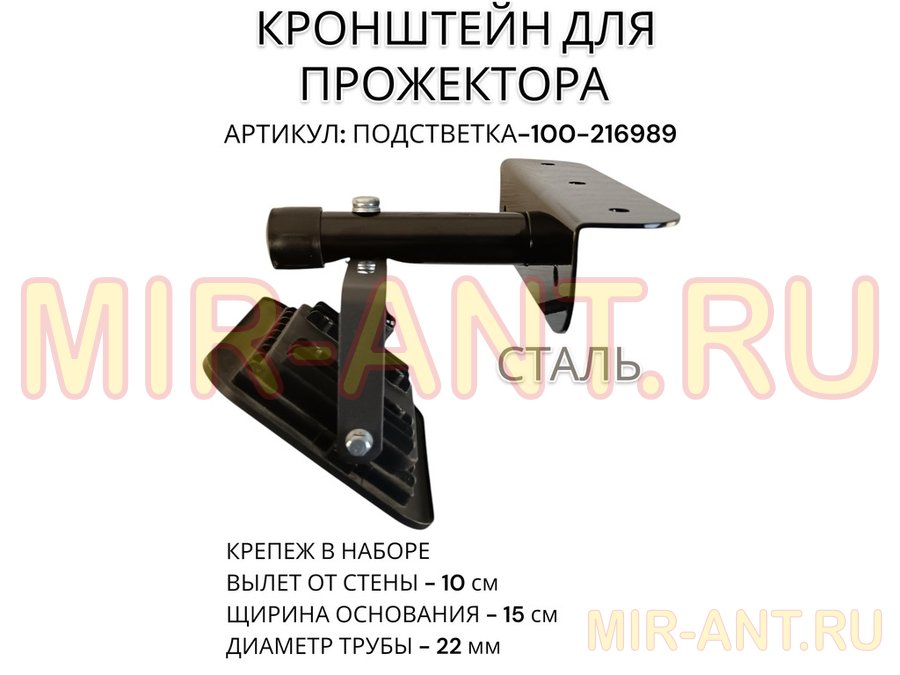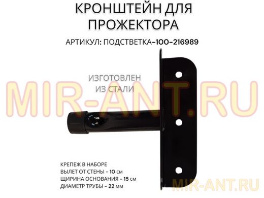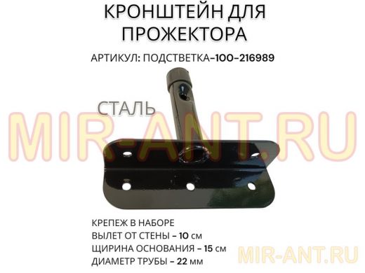 Кронштейн для прожектора "ПОДСВЕТКА- 100-216989" черный с уголком на рекламные щиты, вылет 0,1м - Мир антенн