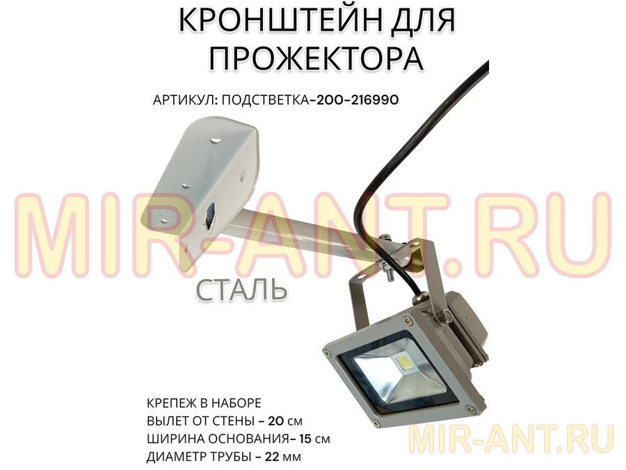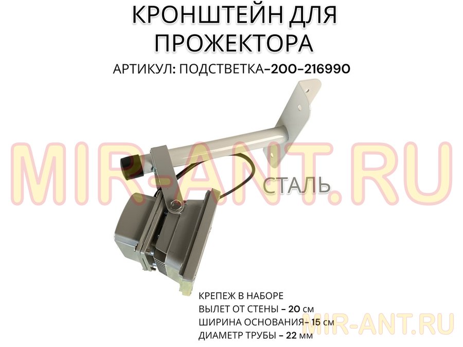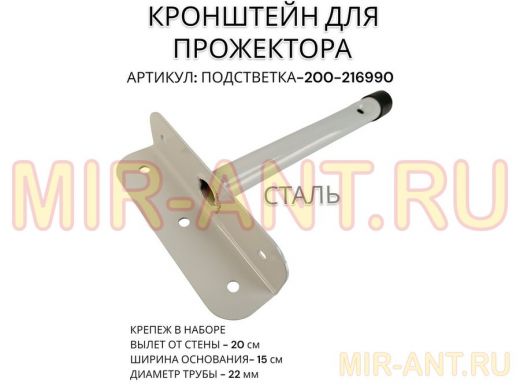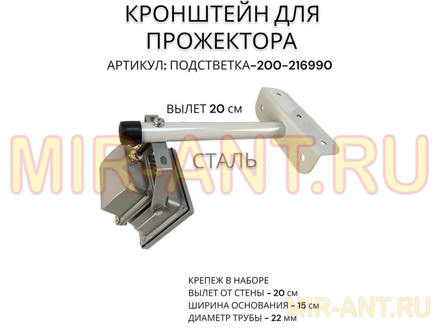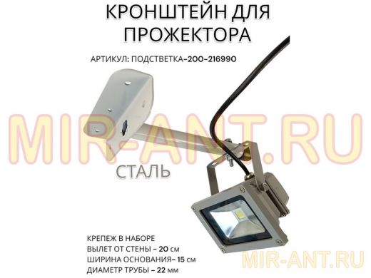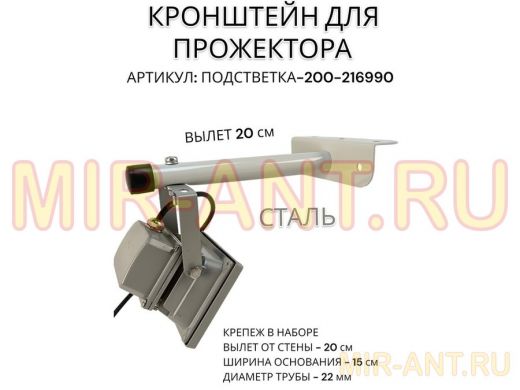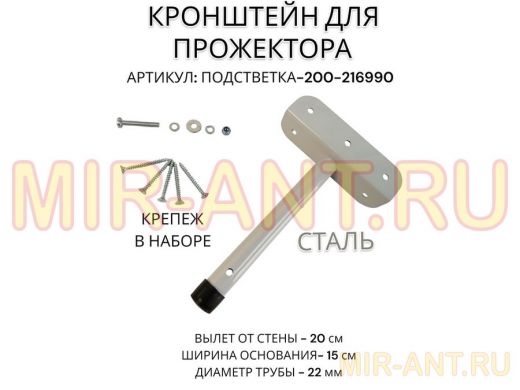 Кронштейн для прожектора "ПОДСВЕТКА- 200-216990" серый с уголком на рекламные щиты, вылет 0,2м - Мир антенн