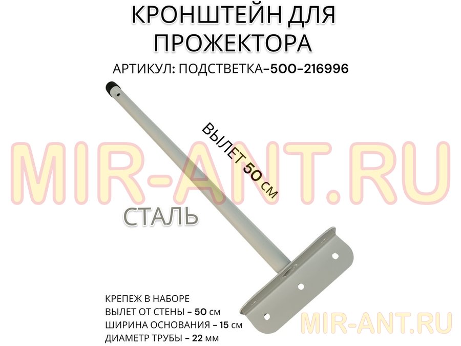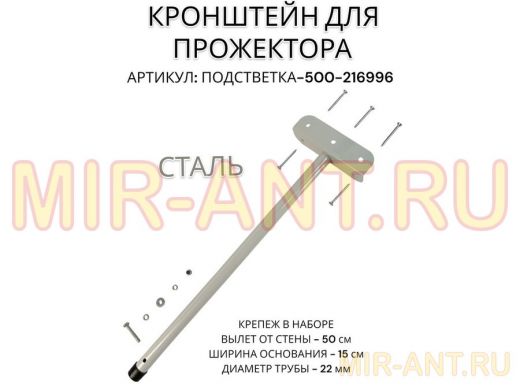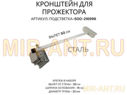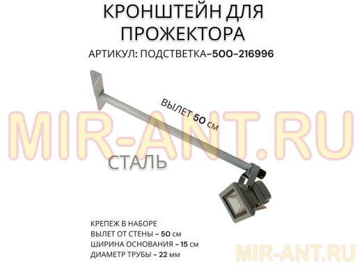 Кронштейн для прожектора "ПОДСВЕТКА- 500-216996" серый с уголком на рекламные щиты, вылет 0,5м - Мир антенн