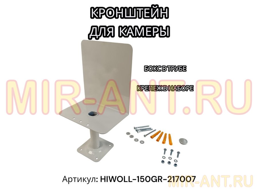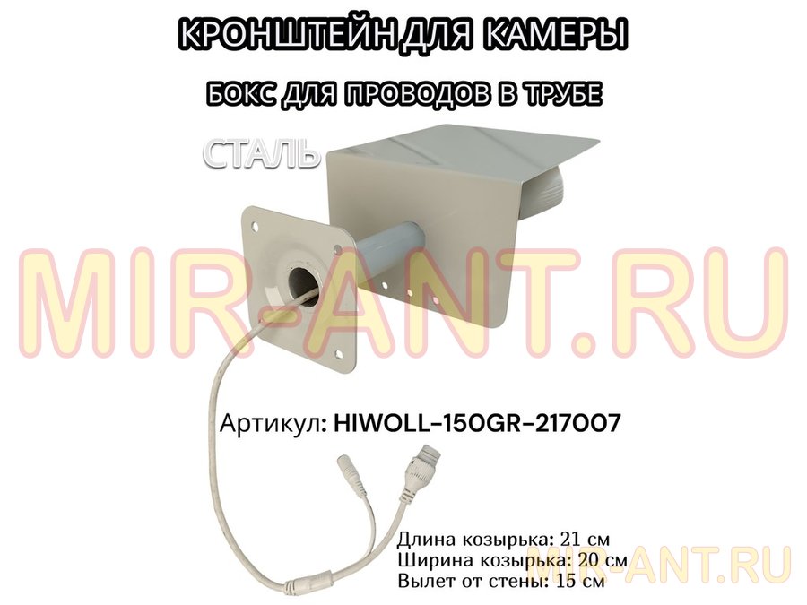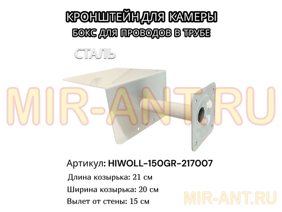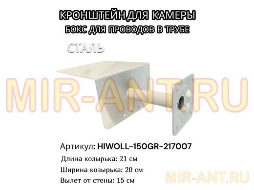 . Для видеокамер. Кронштейны к стене с козырьком "HIWOLL", прямые, бокс диаметром 32мм.