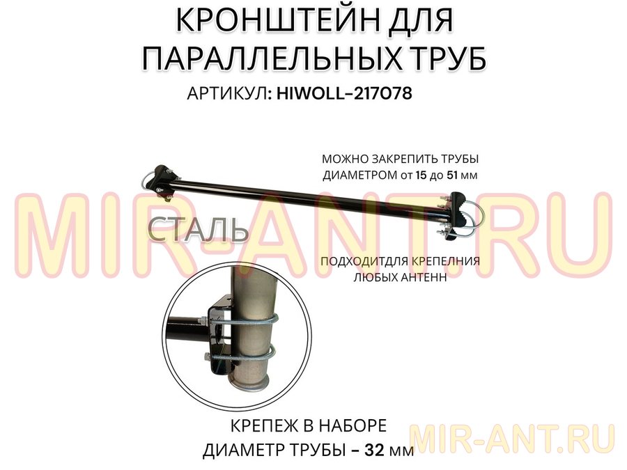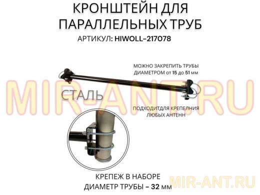 Кронштейн для параллельных труб диаметром от 15 до 51мм длина 75см "HIWOLL-217078" стальной, чёрный - Мир антенн