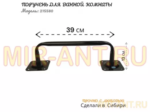 Поручень для туалета и ванной комнаты к стене высота 13 см ширина 39 см "LOFTOM 215580" чёрный - MIR-ANT.RU