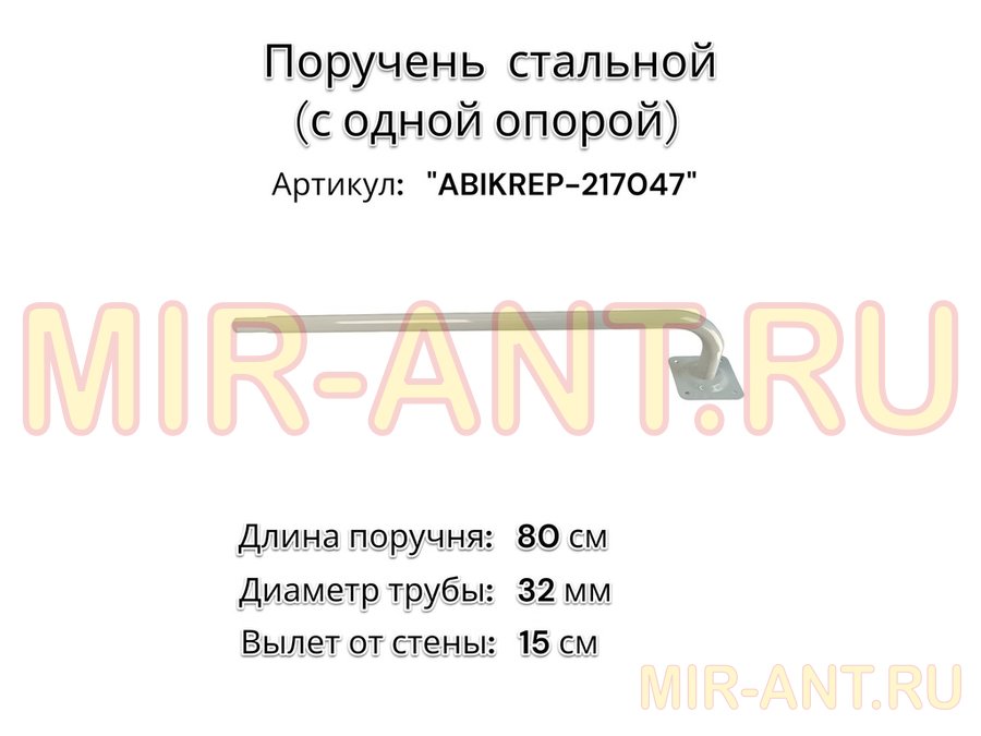 В корзину Купить в 1 клик Поручень пристенный для зданий, длина 80см вылет 15см "ABIKREP-217047" серый, 1 опора, диаметр 32мм