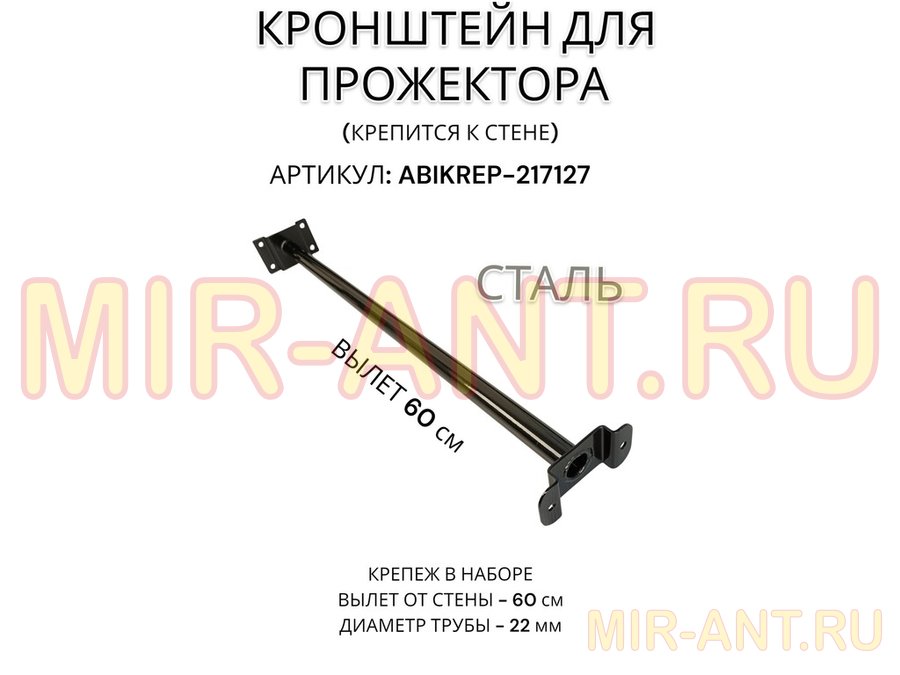 В корзину Купить в 1 клик Кронштейн для прожектора к стене, диаметр 22мм, вылет 0,6 м "ABIKREP-217127" черный, основание 9х6см