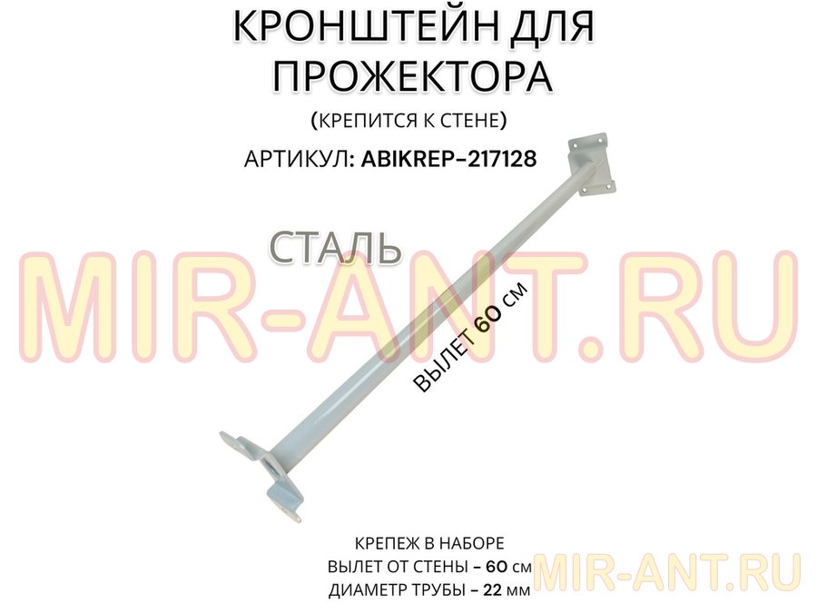 В корзину Купить в 1 клик Кронштейн для прожектора к стене, диаметр 22мм, вылет 0,6 м "ABIKREP-217128" серый, основание 9х6см
