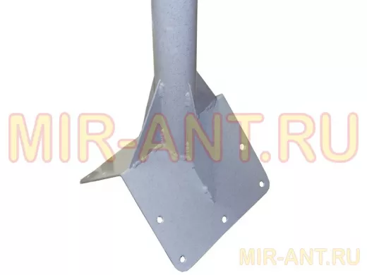 Кронштейн усилен 4-мя стальными косынками, это позволяет получить большую прочность для крепления спутниковых тарелок 0,6м и любых других антенн
