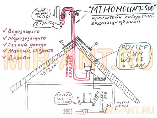 - Появляется возможно красиво установить антенну для мобильного интернета, добиться высоких скоростей и длительного срока службы.