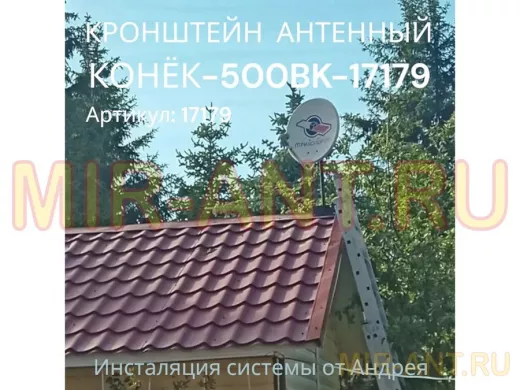 Пример монтажа антенны на кронштейн "С КОЛЬЦОМ-500", "КОНЁК-500"