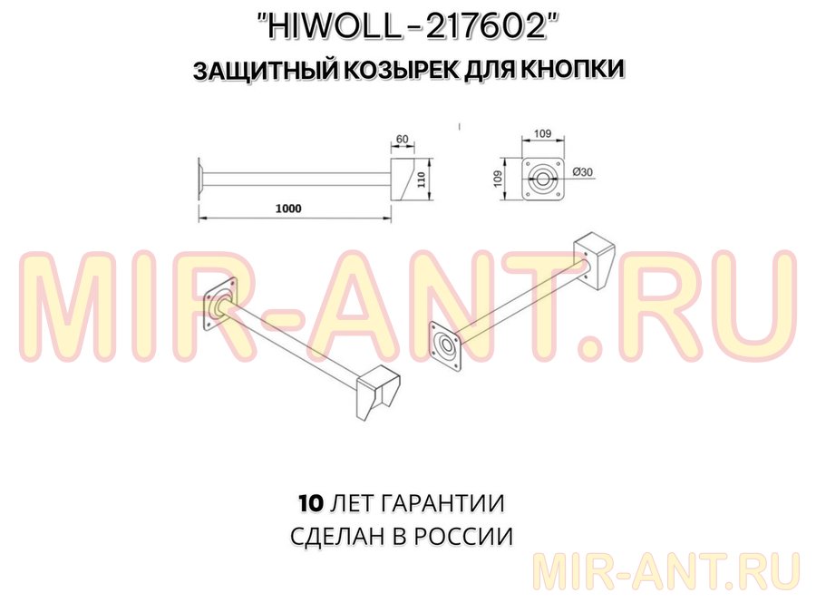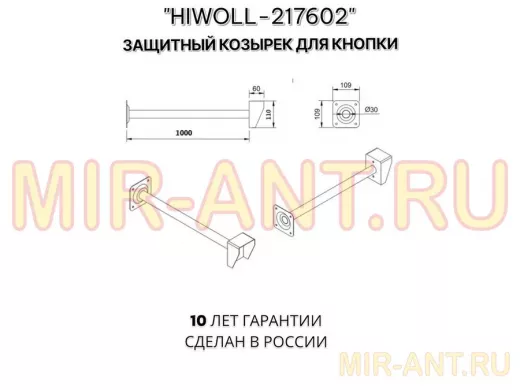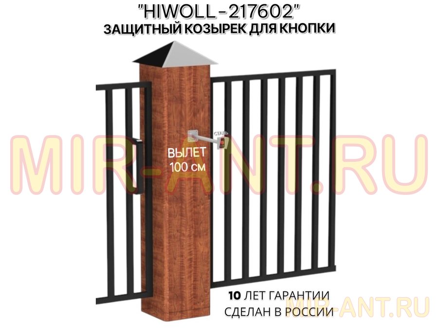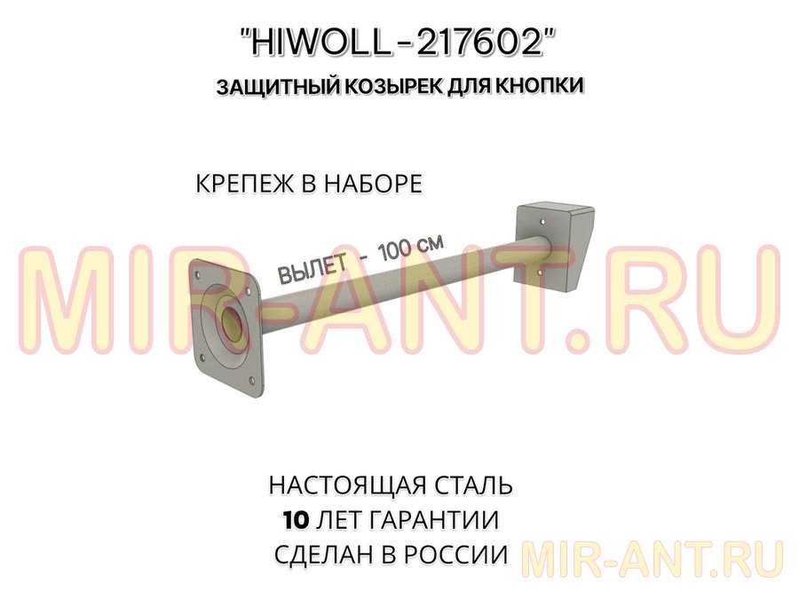 В корзину Купить в 1 клик Стальной защитный козырек для кнопок выхода с вылетом от стены 100см "ВЫЗОВКРЕП-217602" серый,8х11см