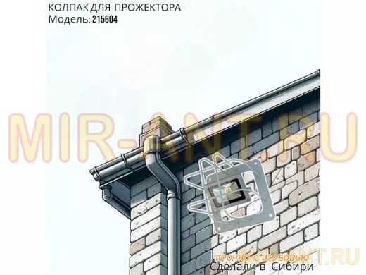 Колпак кожух для прожектора или лампы освещения со скосами 20х20см "POHER-215604" вылет 20см, серый - MIR-ANT.RU