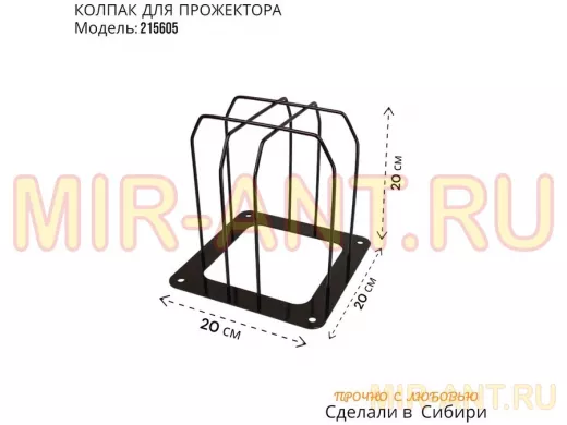 Колпак кожух для прожектора или лампы освещения со скосами 20х20см "POHER-215605" вылет 20см, черный - MIR-ANT.RU