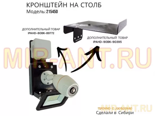 • Кронштейн позволяет быстро зафиксировать камеру и прожектор на столбе, не сверля его.