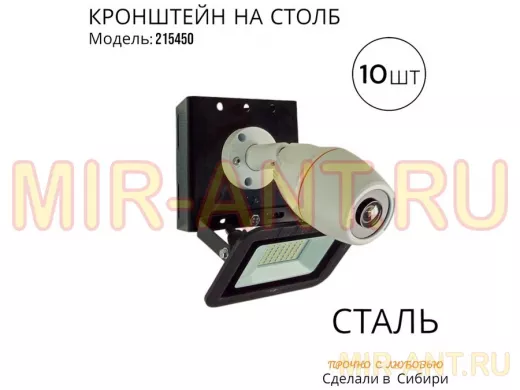 Набор 10 шт. Кронштейн для 1 камеры и прожектора на столб черный "IPAHD-101BK-215450" под хомут - Мир антенн
