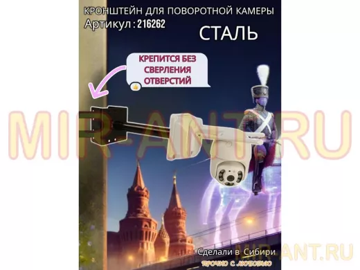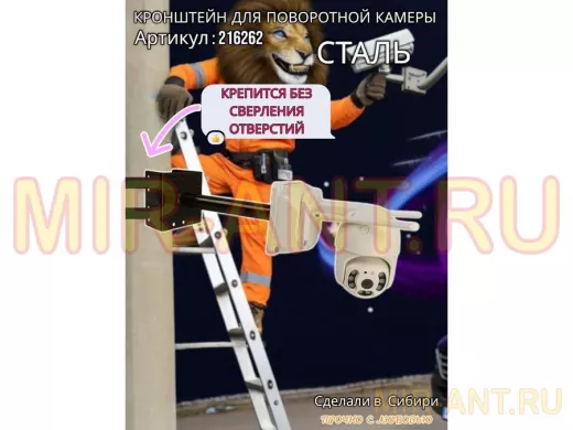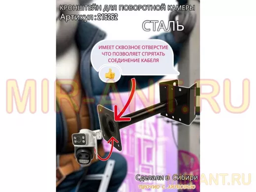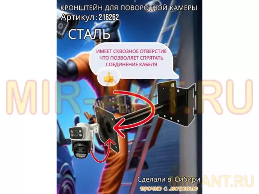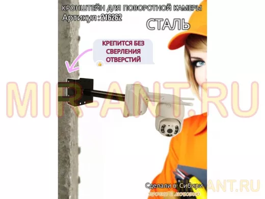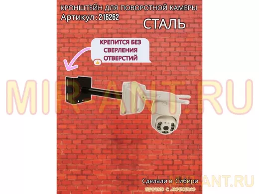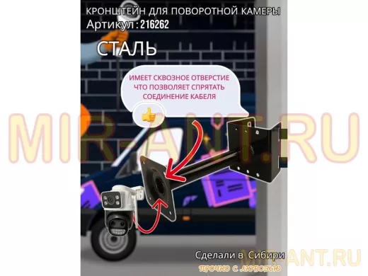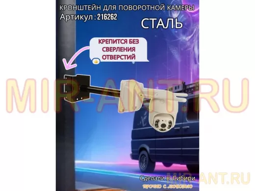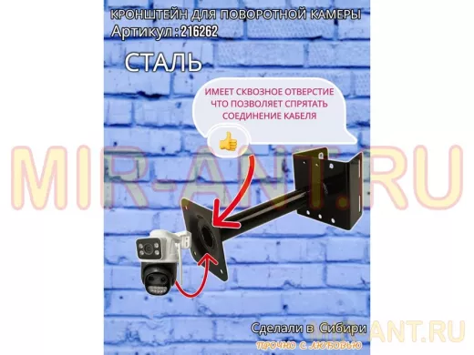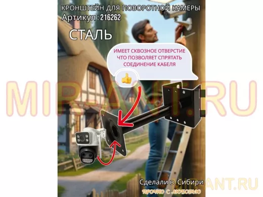 • Стальной кронштейн позволяет вынести камеру от столба на 25 см.