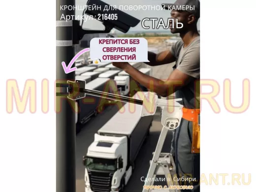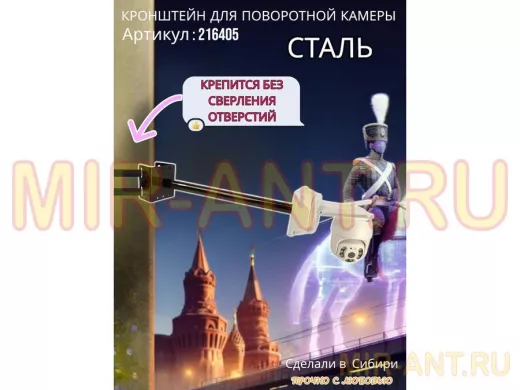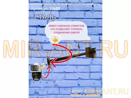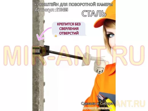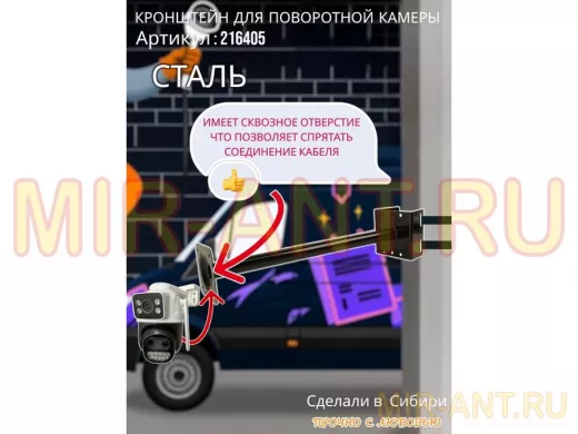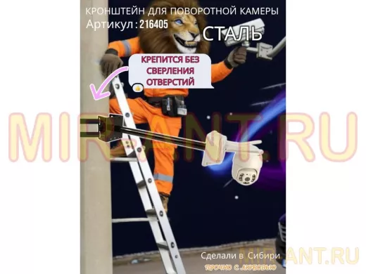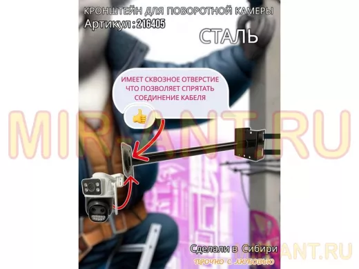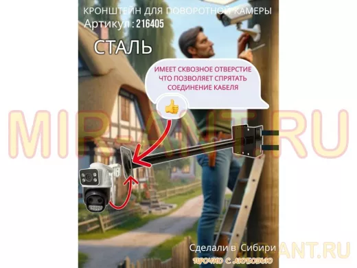 • Стальной кронштейн позволяет вынести камеру от столба на 50 см.