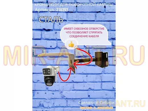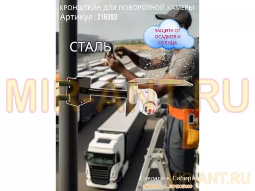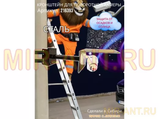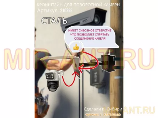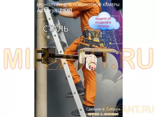 • Стальной кронштейн позволяет вынести камеру от столба на 25 см.