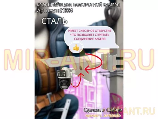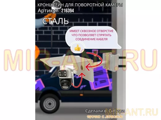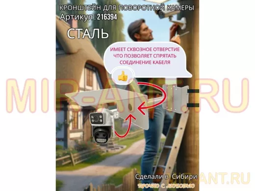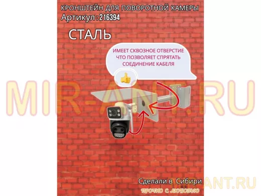 • Стальной кронштейн позволяет вынести камеру от столба на 25 см.