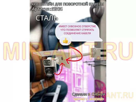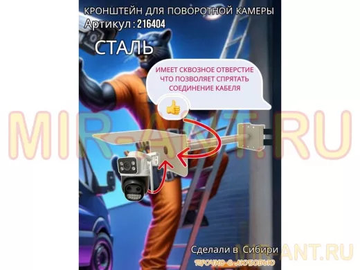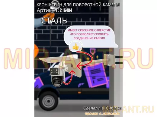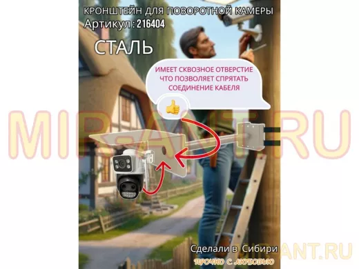• Стальной кронштейн позволяет вынести камеру от столба на 50 см.