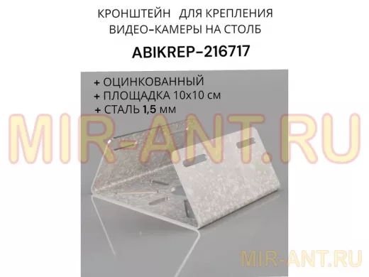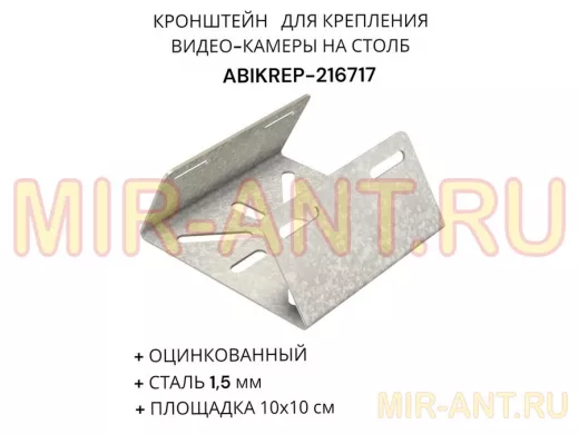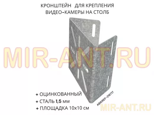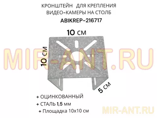 Кронштейн оцинкованный для камеры на столб "ABIKREP-216717" 100х104мм, сталь, под хомуты, вылет 5см - Мир антенн