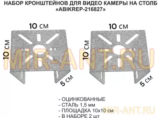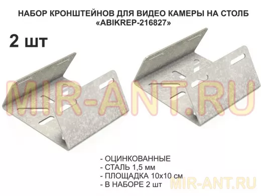 Набор 2 шт. Кронштейн оцинкованный для камеры на столб "ABIKREP-216827" 100х104мм, сталь,под хомуты - Мир антенн