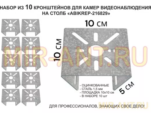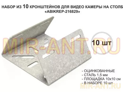 Набор из 10 кронштейнов "ABIKREP-216829". Предназначены для  крепления поворотной видео-камеры или прожектора на столбе.