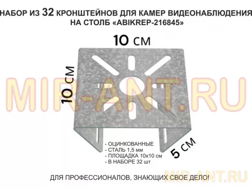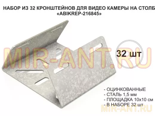 Набор 32 шт. Кронштейн оцинкованный для камеры на столб "ABIKREP-216845" 100х104мм, сталь,под хомуты - Мир антенн